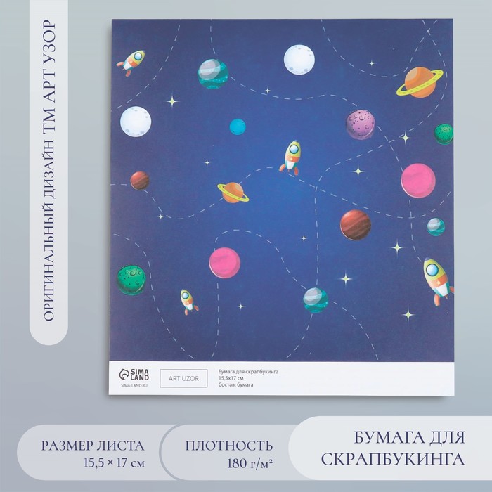 Бумага для скрапбукинга «Арт Узор. Путешествие в космос», 180 г/м², 15.5×17 см