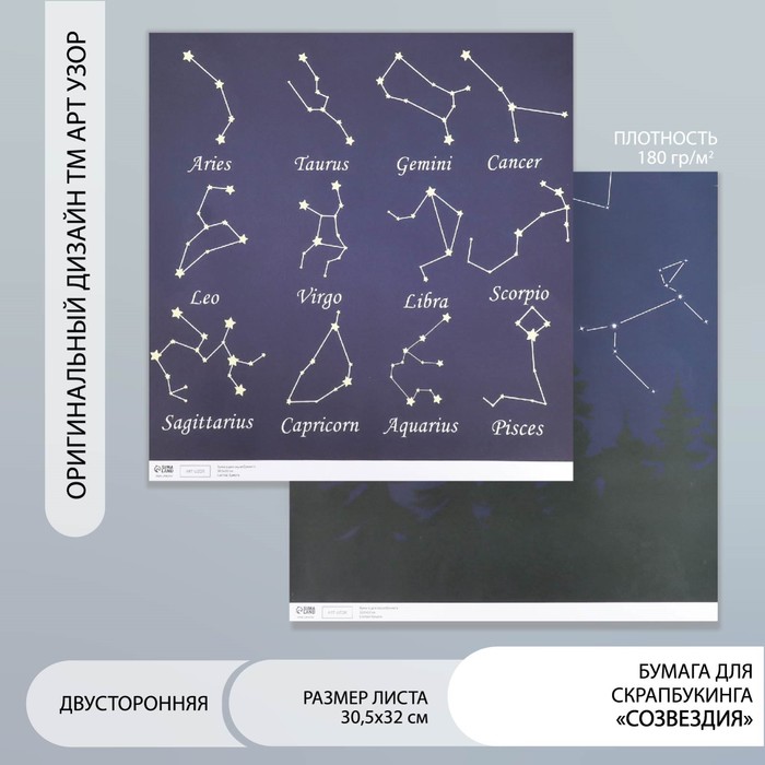 Бумага для скрапбукинга двусторонняя «Созвездия», плотность 180 г, 30.5×32 см