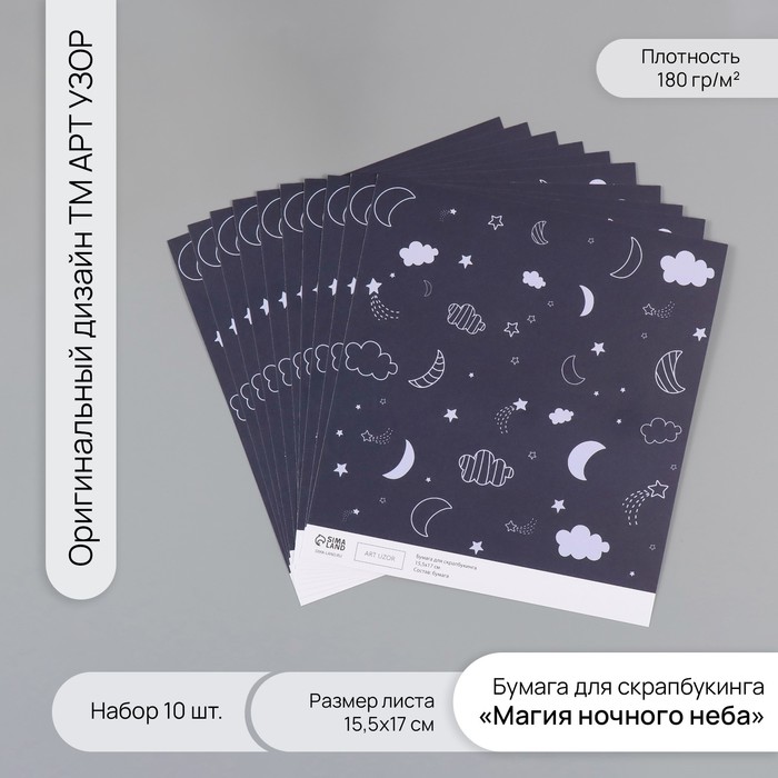 Бумага для скрапбукинга «Магия ночного неба», плотность 180 г, набор 10 шт., 15.5×17 см