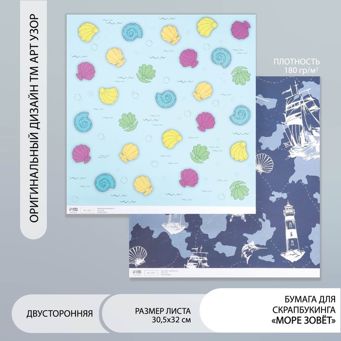 Двусторонняя бумага для скрапбукинга «Арт Узор. Море зовёт», 180 г/м², 30.5×32 см