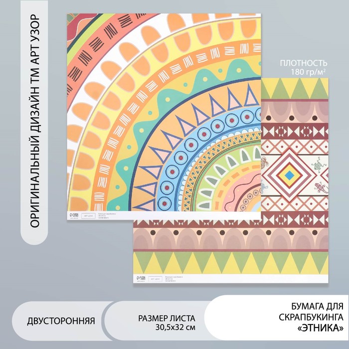 Бумага для скрапбукинга двусторонняя «Этника», плотность 180 г, 30.5×32 см