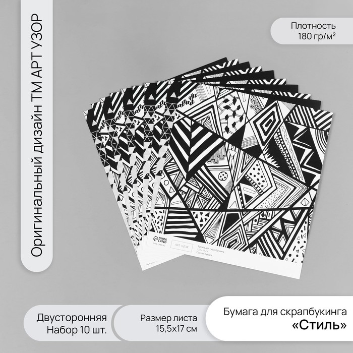 Бумага для скрапбукинга двусторонняя «Стиль», плотность 180 г, набор 10 шт., 15.5×17 см