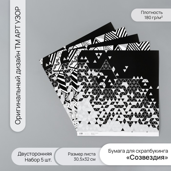 Бумага для скрапбукинга двусторонняя «Созвездия», плотность 180 г, набор 5 шт., 30.5×32 см