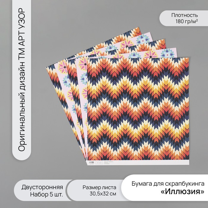 Бумага для скрапбукинга двусторонняя «Иллюзия», плотность 180 г, набор 5 шт., 30.5×32 см
