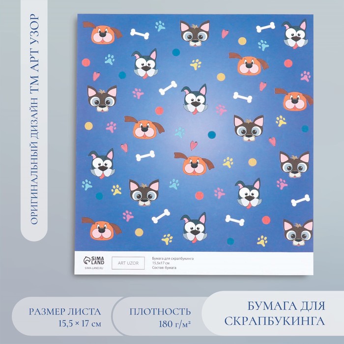 Бумага для скрапбукинга «Пёсики», плотность 180 г, 15.5×17 см