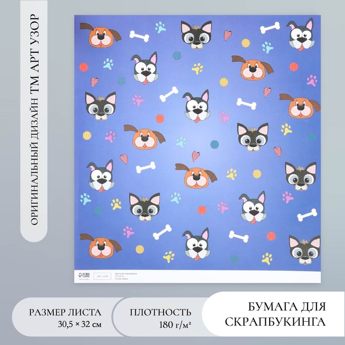 Бумага для скрапбукинга «Пёсики», плотность 180 г, 30.5×32 см