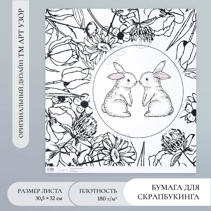 Бумага для скрапбукинга «Милые зайчики», плотность 180 г, 30.5×32 см
