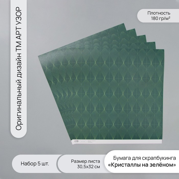 Бумага для скрапбукинга «Кристаллы на зелёном», плотность 180 г, набор 5 шт., 30.5×32 см