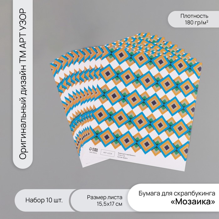 Бумага для скрапбукинга «Мозаика», плотность 180 г, набор 10 шт., 15.5×17 см