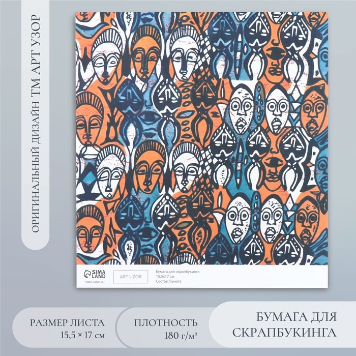 Бумага для скрапбукинга «Африка. Лица», плотность 180 г, 15.5×17 см