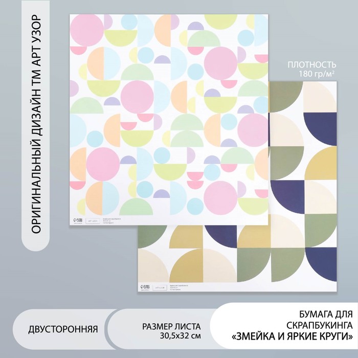 Бумага для скрапбукинга двусторонняя «Змейка и яркие круги», плотность 180 г, 30.5×32 см