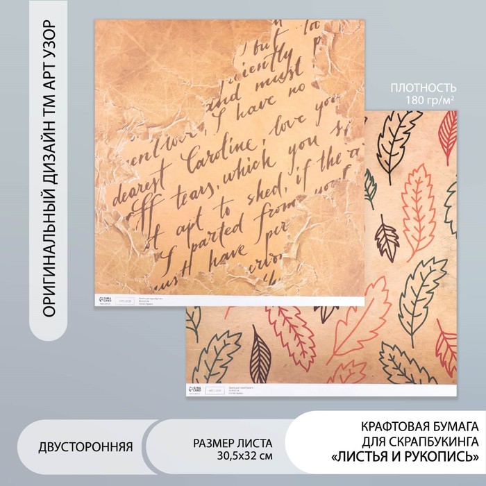 Бумага для скрапбукинга двусторонняя «Листья и рукопись», плотность 180 г, 30.5×32 см