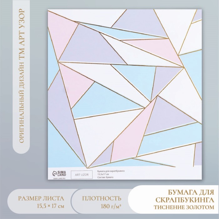 Бумага для скрапбукинга золото «Треугольники», плотность 180 г, 15.5×17 см