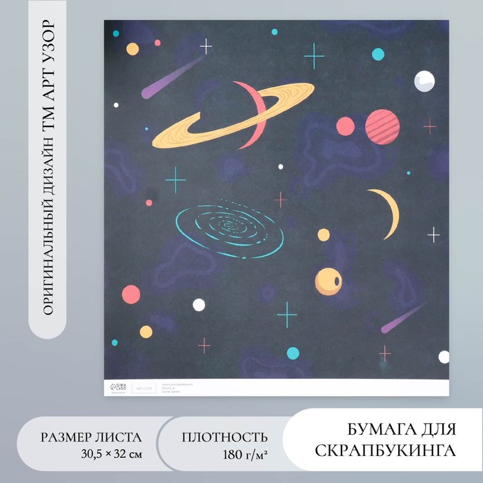 Бумага для скрапбукинга «Арт Узор. Вселенная», 180 г/м², 30.5×32 см