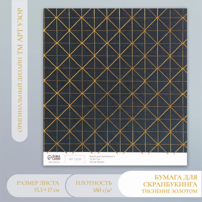 Бумага для скрапбукинга золото "Геометрия на чёрном" плотность 180 гр 15,5х17 см
