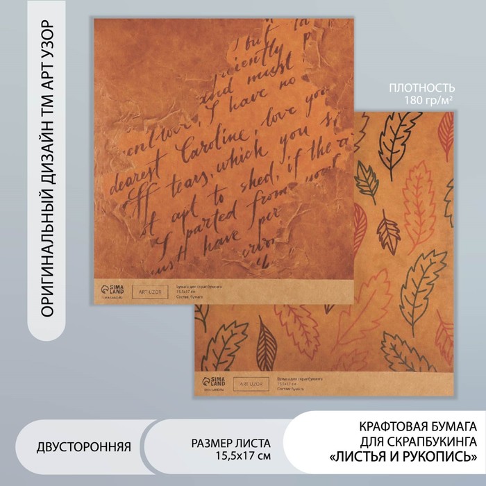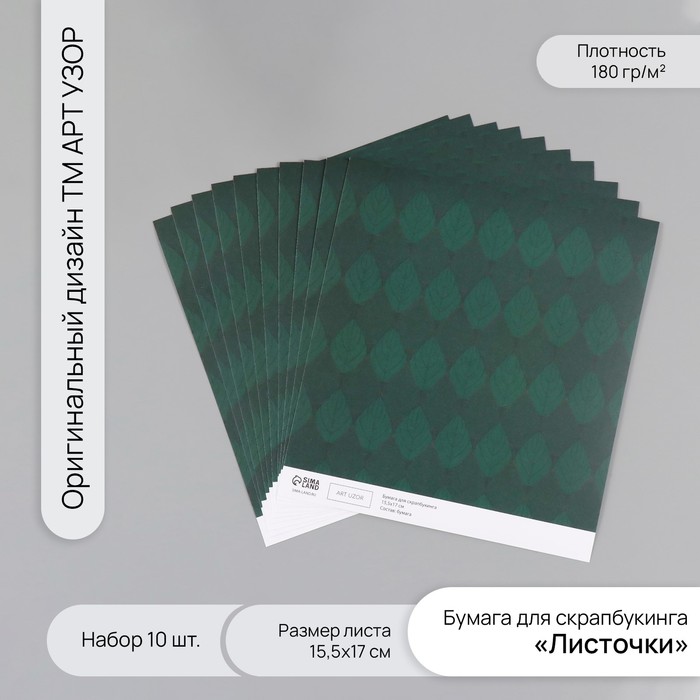 Бумага для скрапбукинга «Листочки», плотность 180 г, набор 10 шт., 15.5×17 см