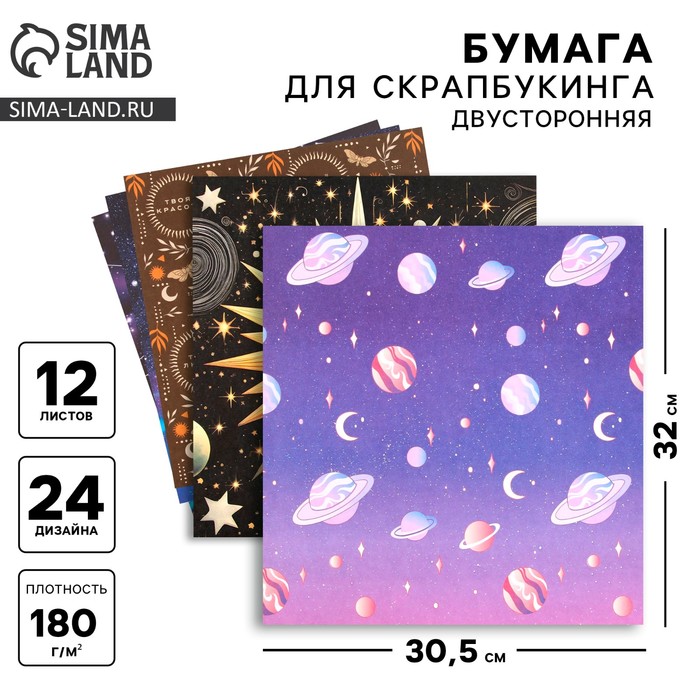 Бумага для скрапбукинга «Космос внутри», 12 листов, 30.5×30.5 см, 180 г/м²