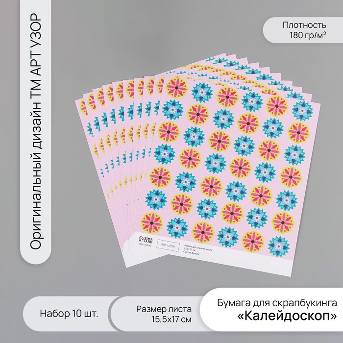 Бумага для скрапбукинга «Калейдоскоп», плотность 180 г, набор 10 шт., 15.5×17 см