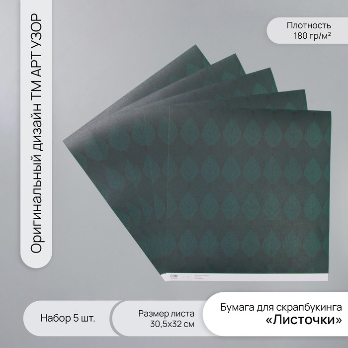 Бумага для скрапбукинга «Листочки», плотность 180 г, набор 5 шт., 30.5×32 см