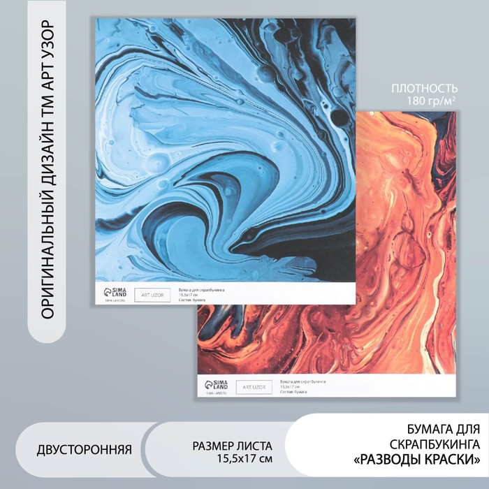 Бумага для скрапбукинга двусторонняя «Разводы краски», плотность 180 г, 15.5×17 см