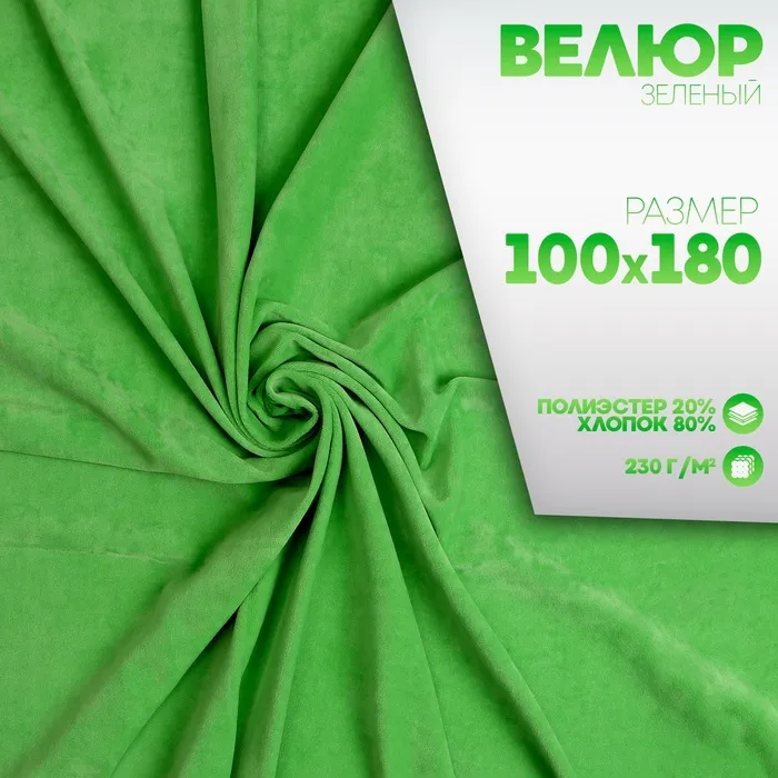 Ткань для рукоделия, велюр на трикотажной основе, зелёный, лоскут 100*180 см