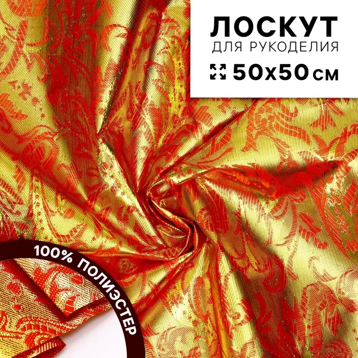 Ткань для рукоделия «Парча», красный с золотыми узорами, лоскут 50 × 50 см