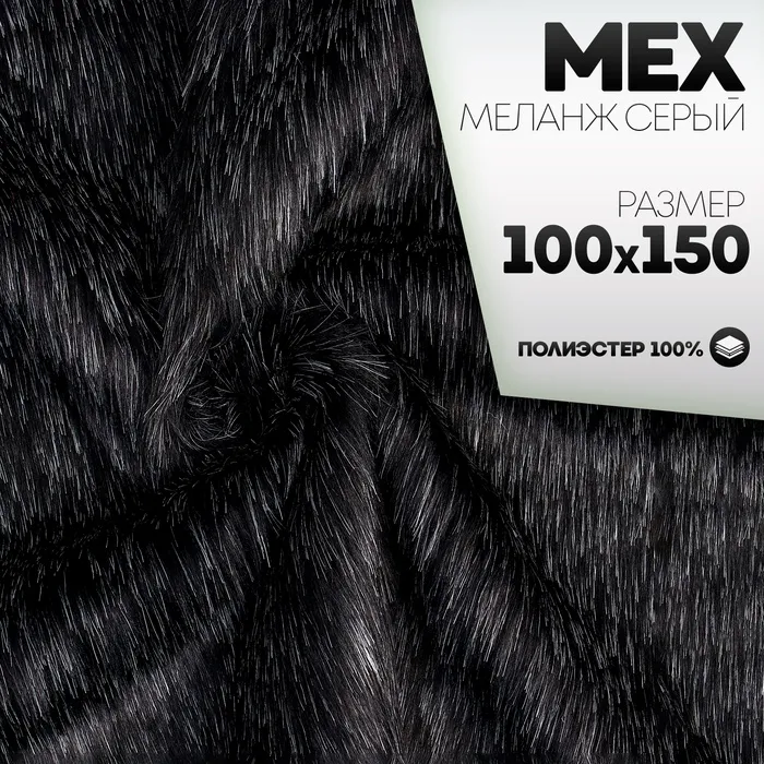 Ткань для рукоделия, «Мех» на трикотажной основе, лоскут 100 × 150 см, цвет меланж серый