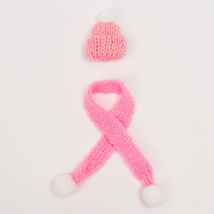 Вязаные шапка и шарфик для игрушек, цвет розовый