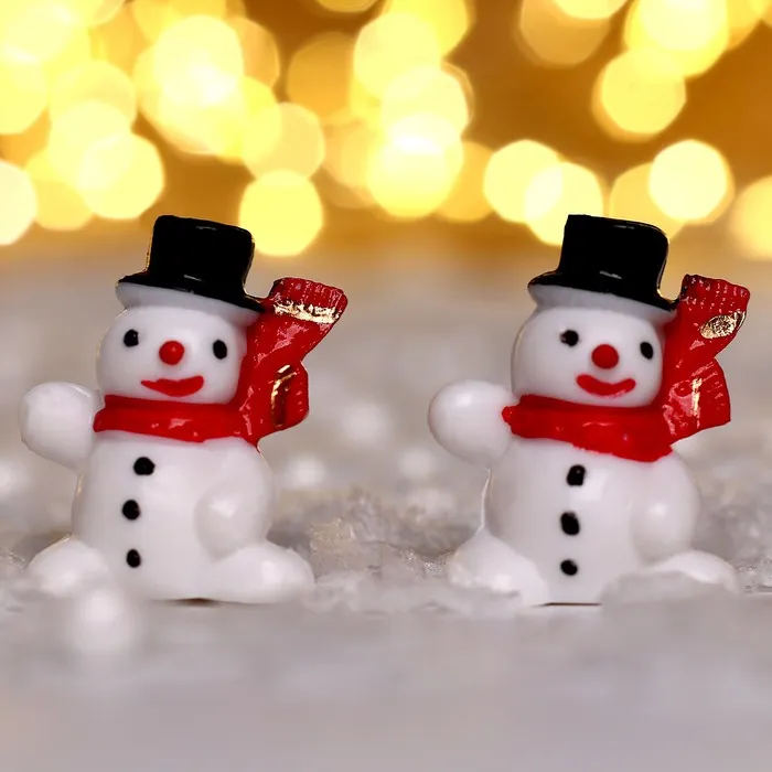 Миниатюра кукольная «Снеговик с шарфом», набор 2 шт., размер 1 шт. — 3.3×2.7 см