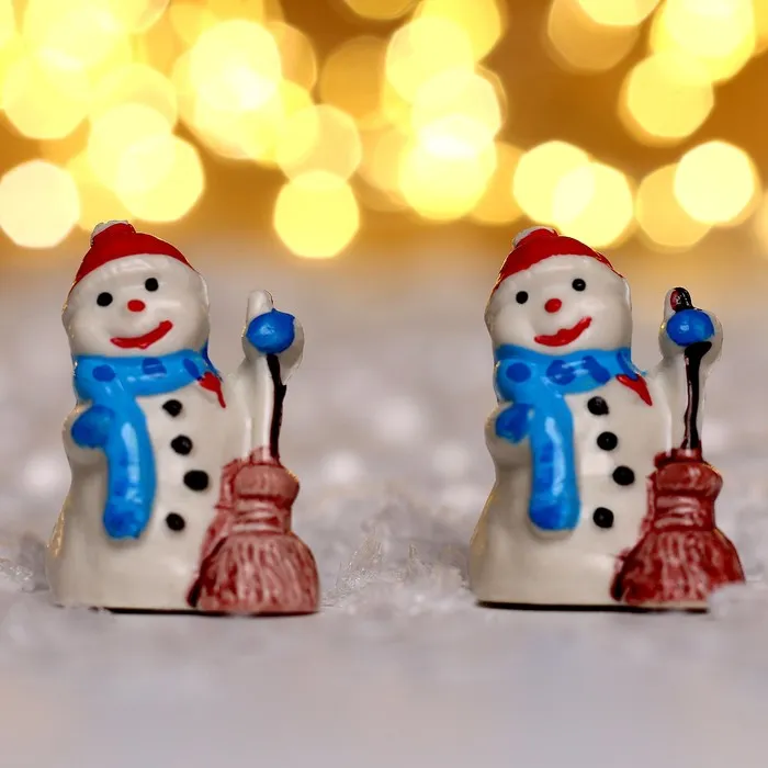 Миниатюра кукольная «Снеговик с метлой», набор 2 шт., размер 1 шт. — 3.3×2 см