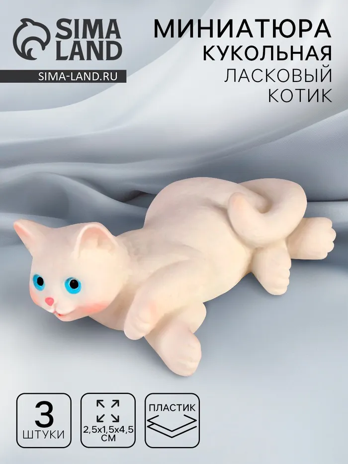 Миниатюра кукольная «Ласковый котик», набор 3 шт., размер 1 шт. — 2,5 × 1,5 × 4,5 см
