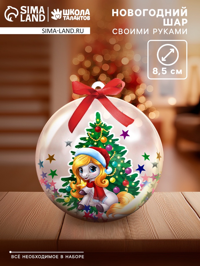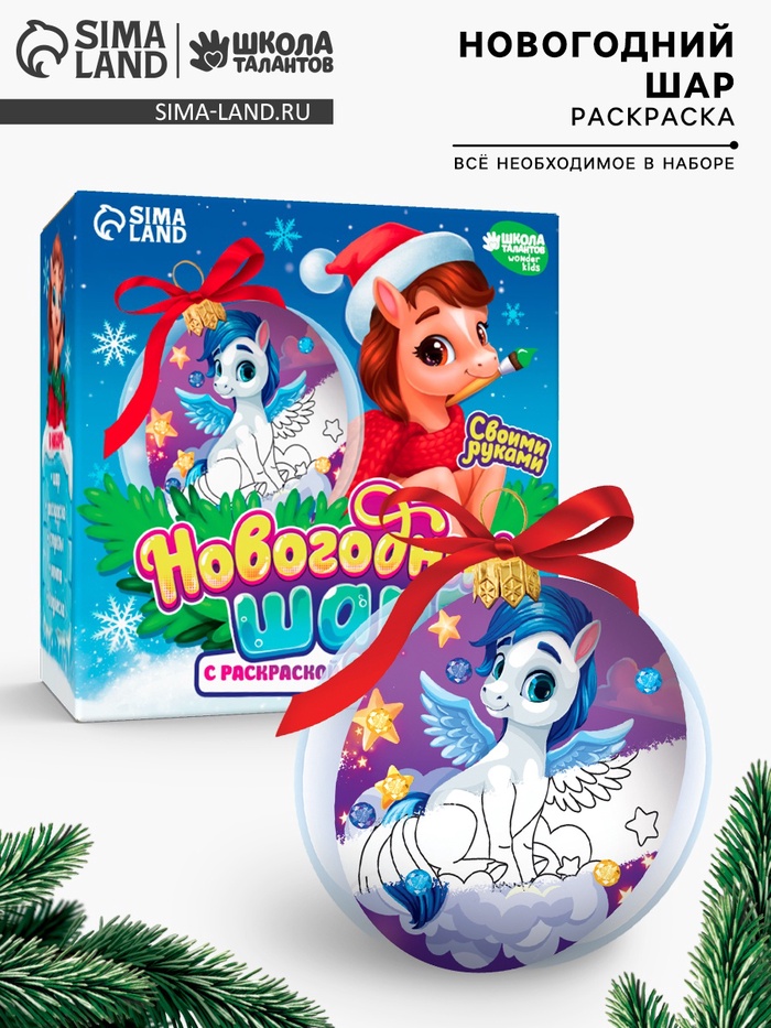 Елочный шар своими руками с раскраской «Лошадка», набор для творчества