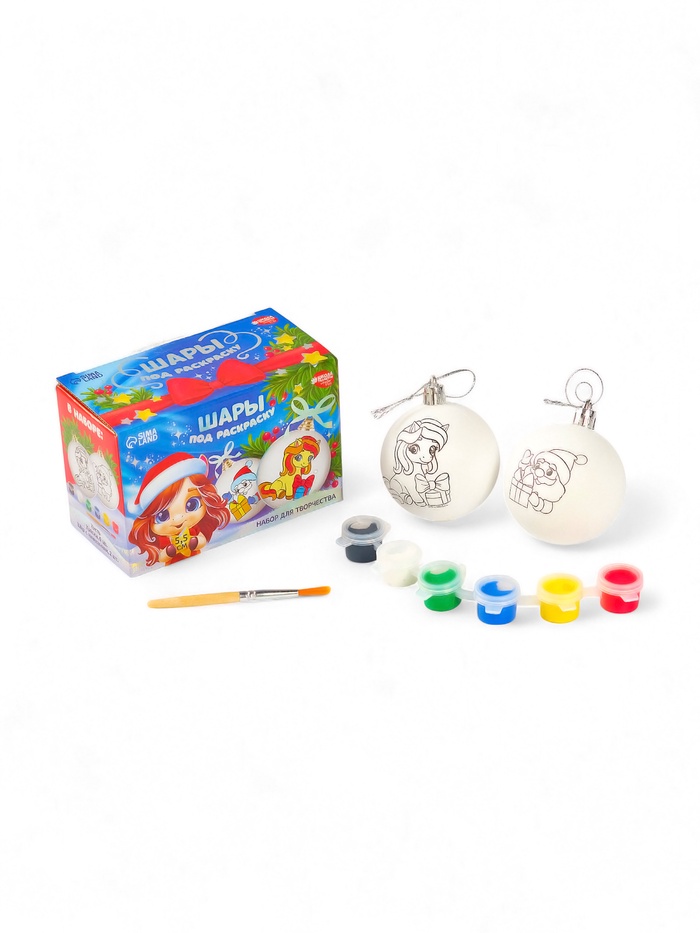 Набор для творчества «Елочные шары под раскраску», с красками, 2 шт.