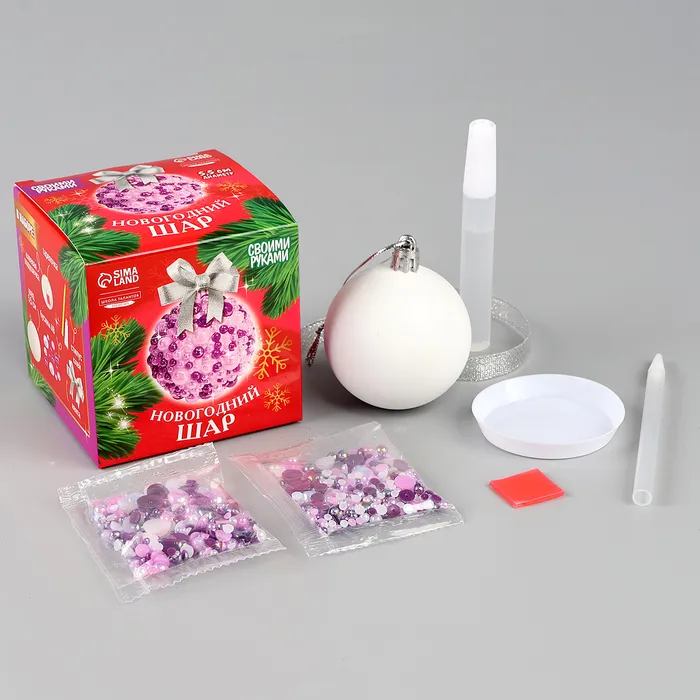 Ёлочный шар своими руками на новый год. Декор полубусинами и блестками «Фиолетовый», набор для творчества