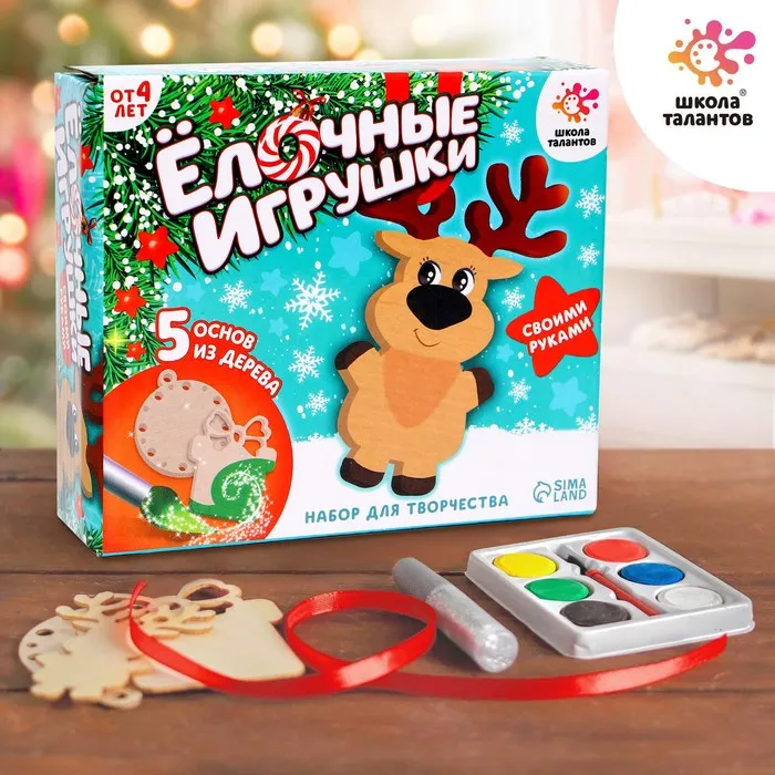 Набор для творчества «Ёлочные игрушки из дерева. Сделай сам» (олень, подарок, шарик)
