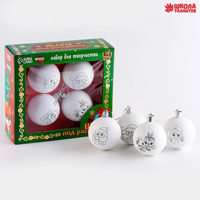 Ёлочные шары под раскраску на новый год «Волшебный праздник», 4 шт, d = 5,5см, набор для творчества