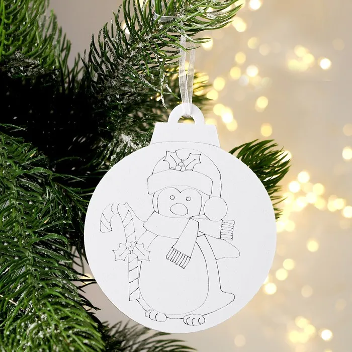 Ёлочное украшение под раскраску «Пингвин» 4 шт., кисть