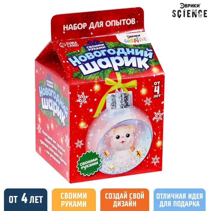 Ёлочный шар своими руками «Котик», набор для опытов, диаметр 7 см