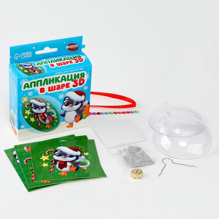 Ёлочный шар своими руками на новый год «Аппликация. Пингвинчик», набор для творчества
