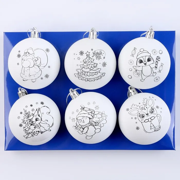 Ёлочные шары под раскраску на новый год «Волшебный подарок», d = 7 см, 6 шт, набор для творчества