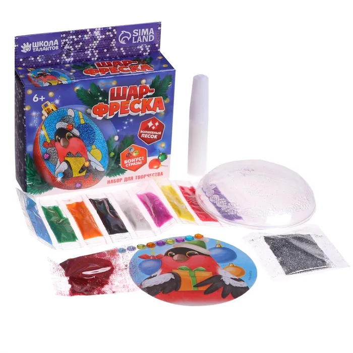 Ёлочный шар-фреска «Новый год! Снегирь с подарком», набор для творчества