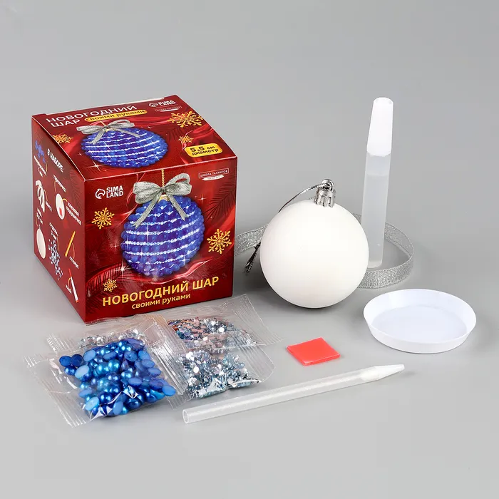 Ёлочный шар своими руками на новый год. Декор полубусинами и блестками «Синий и голубой», набор для творчества