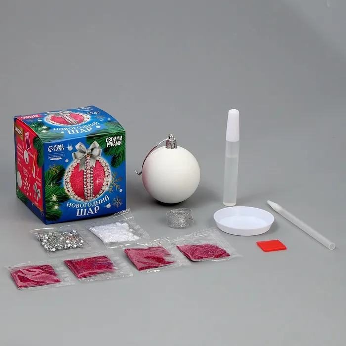 Ёлочный шар своими руками на новый год. Декор полубусинами и блестками «Розовый, белый и серебро», набор для творчества