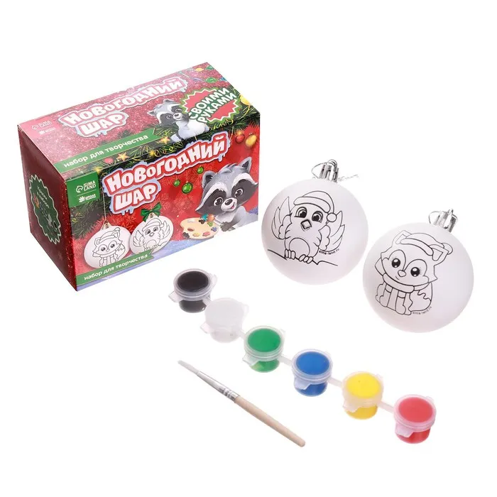 Ёлочные шары под раскраску «Новый год», 2 шт, краски, набор для творчества