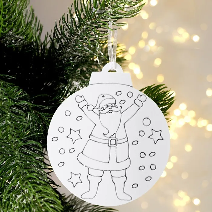 Ёлочное украшение под раскраску на новый год «Ёлочка», d=5,5 см, набор для творчества