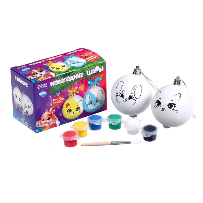 Ёлочные шары под раскраску на новый год «Сказка»,краски, 2 шт, набор для творчества