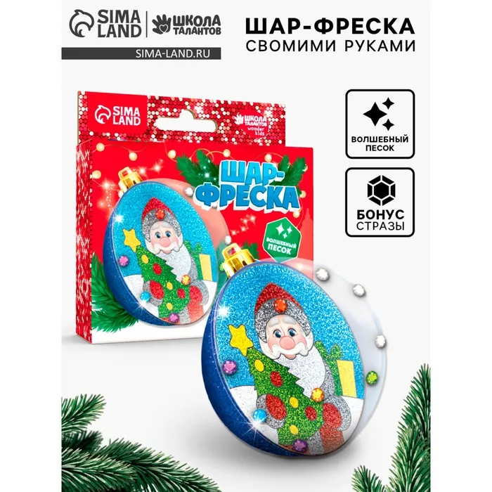 Ёлочный шар - фреска своими руками на новый год «Дед Мороз и елочка», набор для творчества