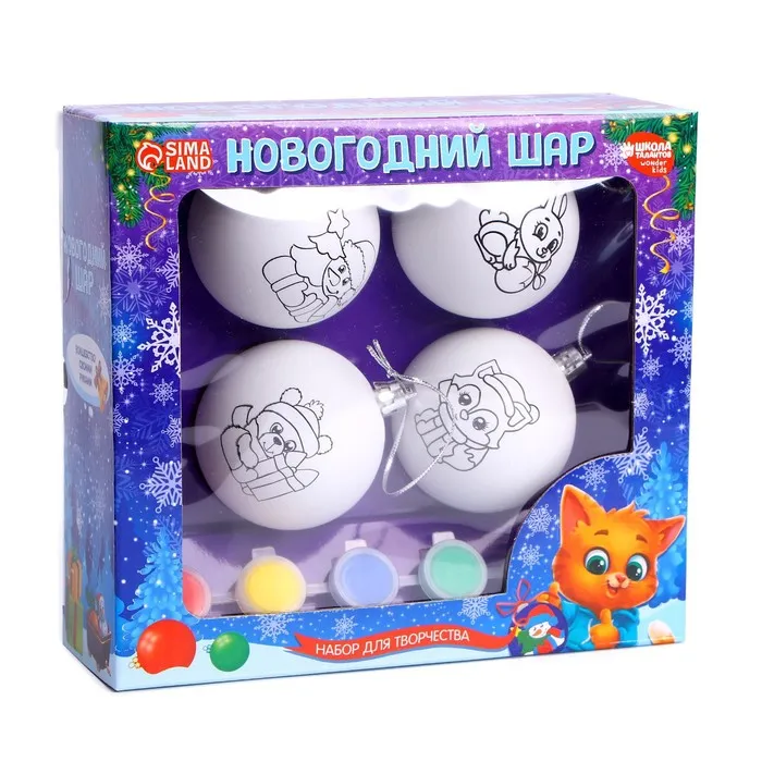 Ёлочные шары под раскраску «С новым годом», краски, 4 шт, набор для творчества