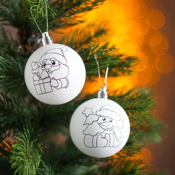 Ёлочные шары под раскраску на новый год «Сказка»,краски, 2 шт, набор для творчества