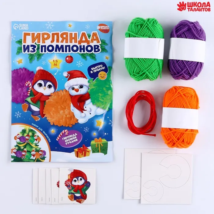УЦЕНКА Гирлянда своими руками из помпонов на новый год «Снеговик и пингвин», набор для творчества